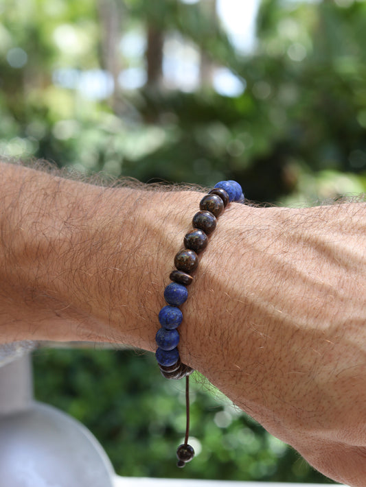 Lapis Lazuli & Bronzite Jasper Men’s Beaded Bracelet