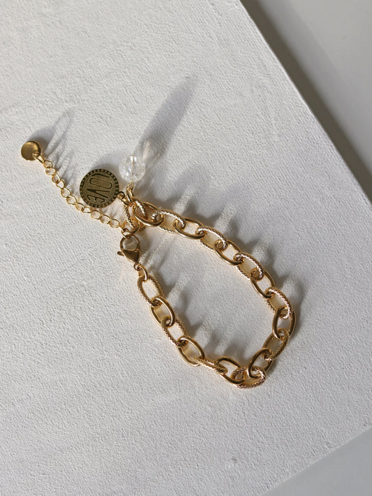 Textured Chain Bracelet with Quartz and Love charm
