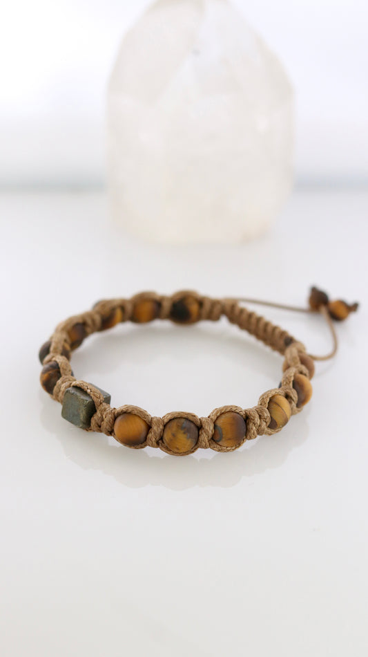Tigers eye Pyrite Macrame Bracelet for Men High Quality Natural Protection Gemstone Spiritual Healing Energy Stone Soulmate Anniversary Gift for Him
